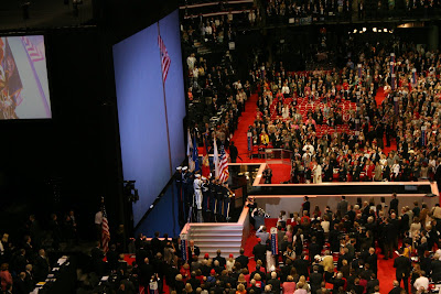 An honor guard from Fort Snelling presented the colors to begin the final night of the convention. The stage had been redesigned for McCain's speech. He wanted to be in the middle of the crowd, to create more of the "town hall meeting" style that he has used on the campaign trail.